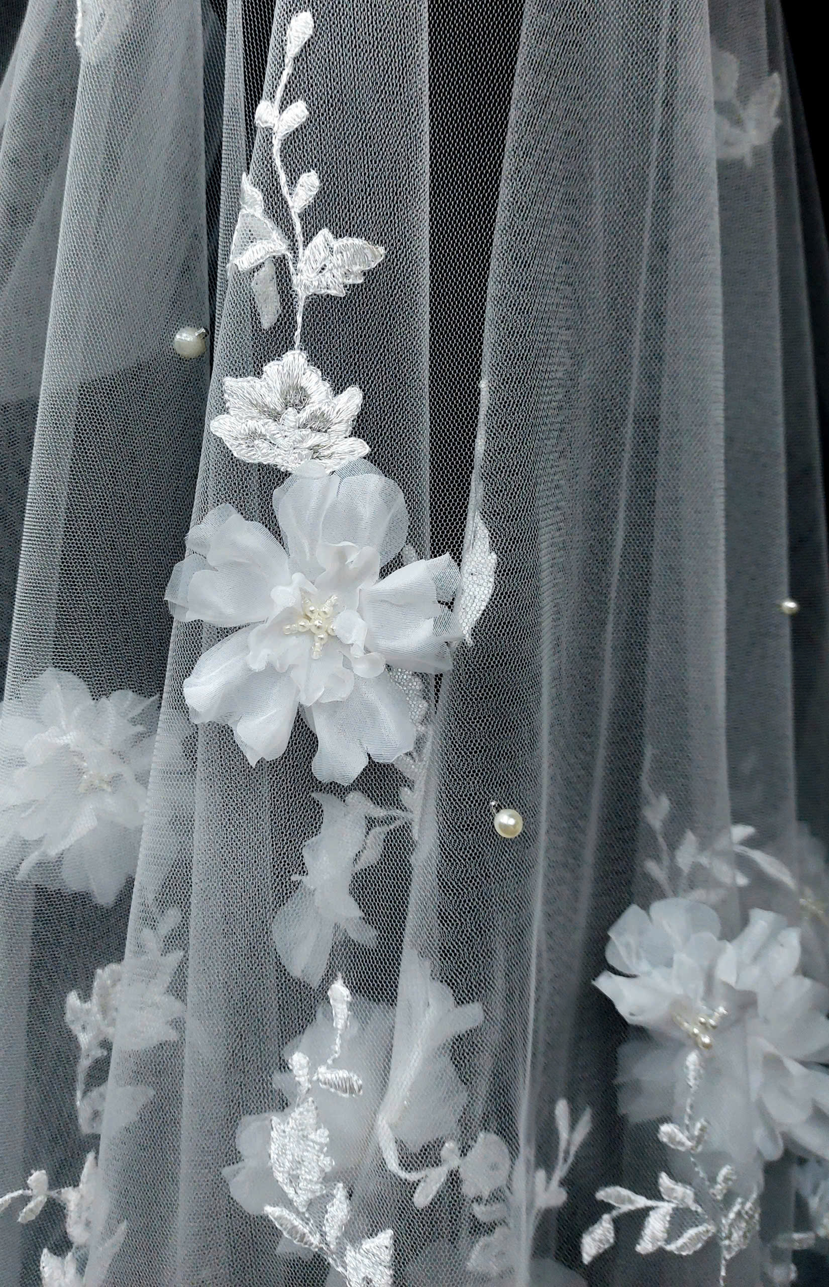 – Dimension: 3 meter long x 1.6 meter wide x 80cm blusher (drop veil)